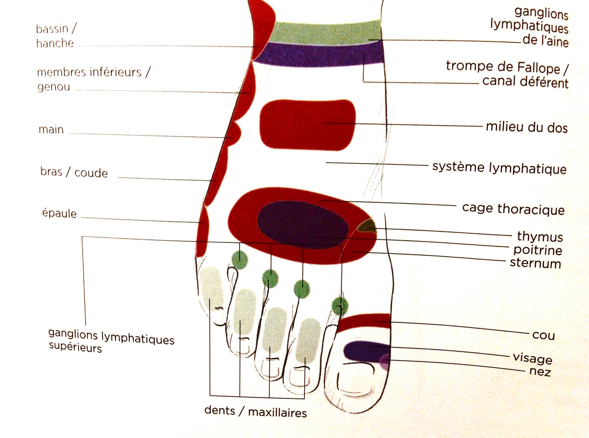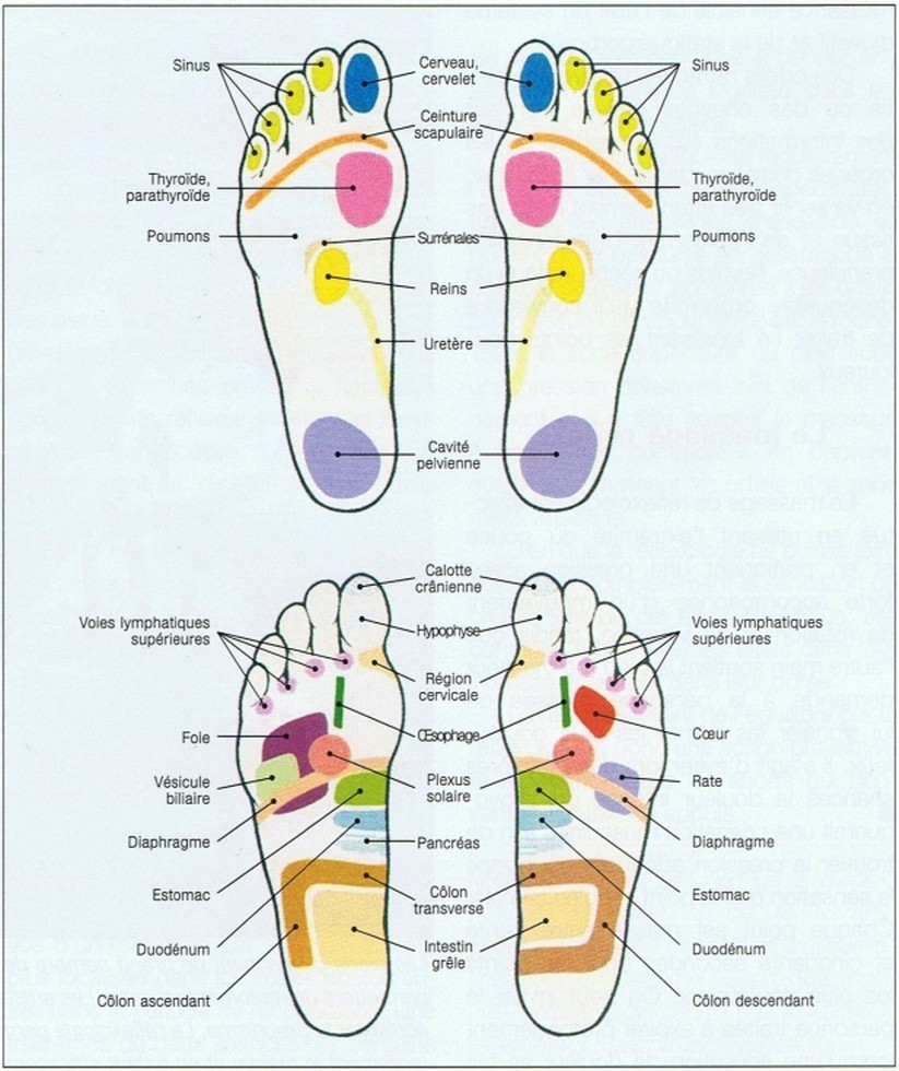 Merci au guide pratique de réflexologie (Ed. Marabout) pour cette leçon bien pratique.
