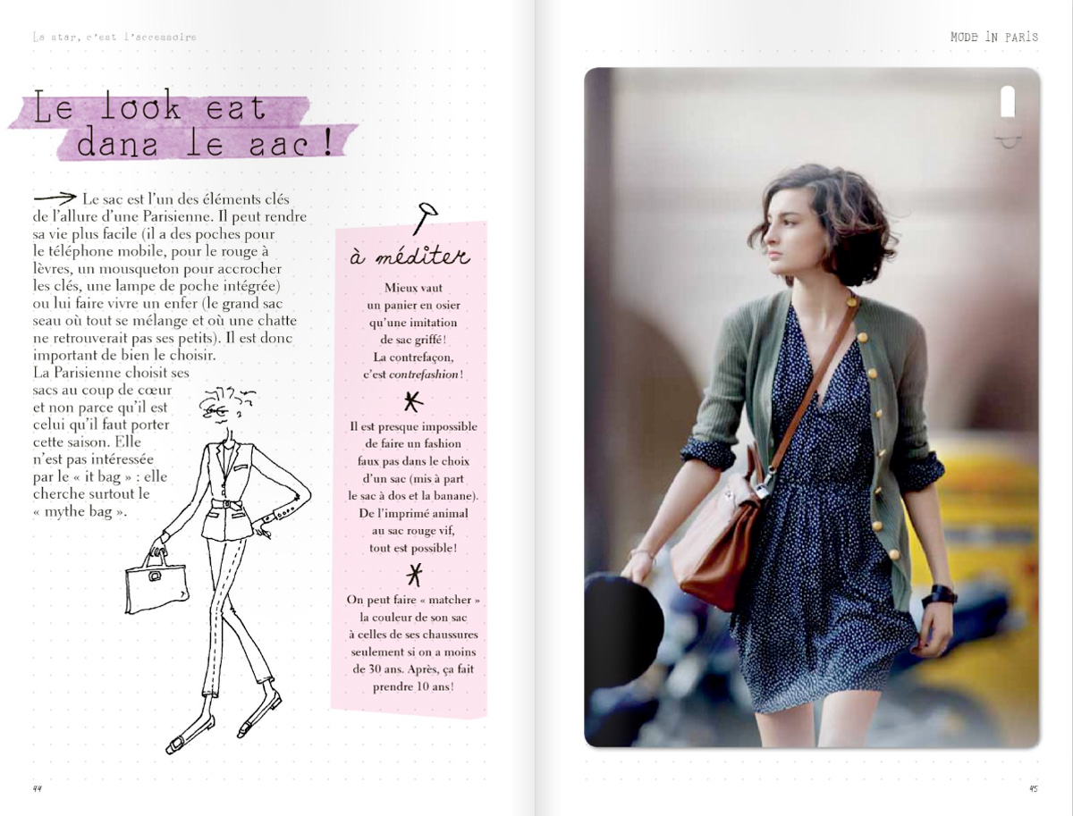 Un plaisir de le parcourir car chaque page au look scrapbook nous invite à une attitude, un style, une adresse… Que vous soyez parisienne ou non, c’est très sympa pour se faire une journée entre copine, avec sa maman ou même seule. On shop mieux toute seule dès fois 😉