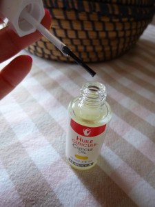 Pour ça, j’utilise l’huile cuticule de Mavala. L’huile est dans un petit flacon de vernis, mais surtout elle sent super bon !! En plus j’ai le souvenir qu’elle était moins chère que les autres marques présentes chez Sephora.