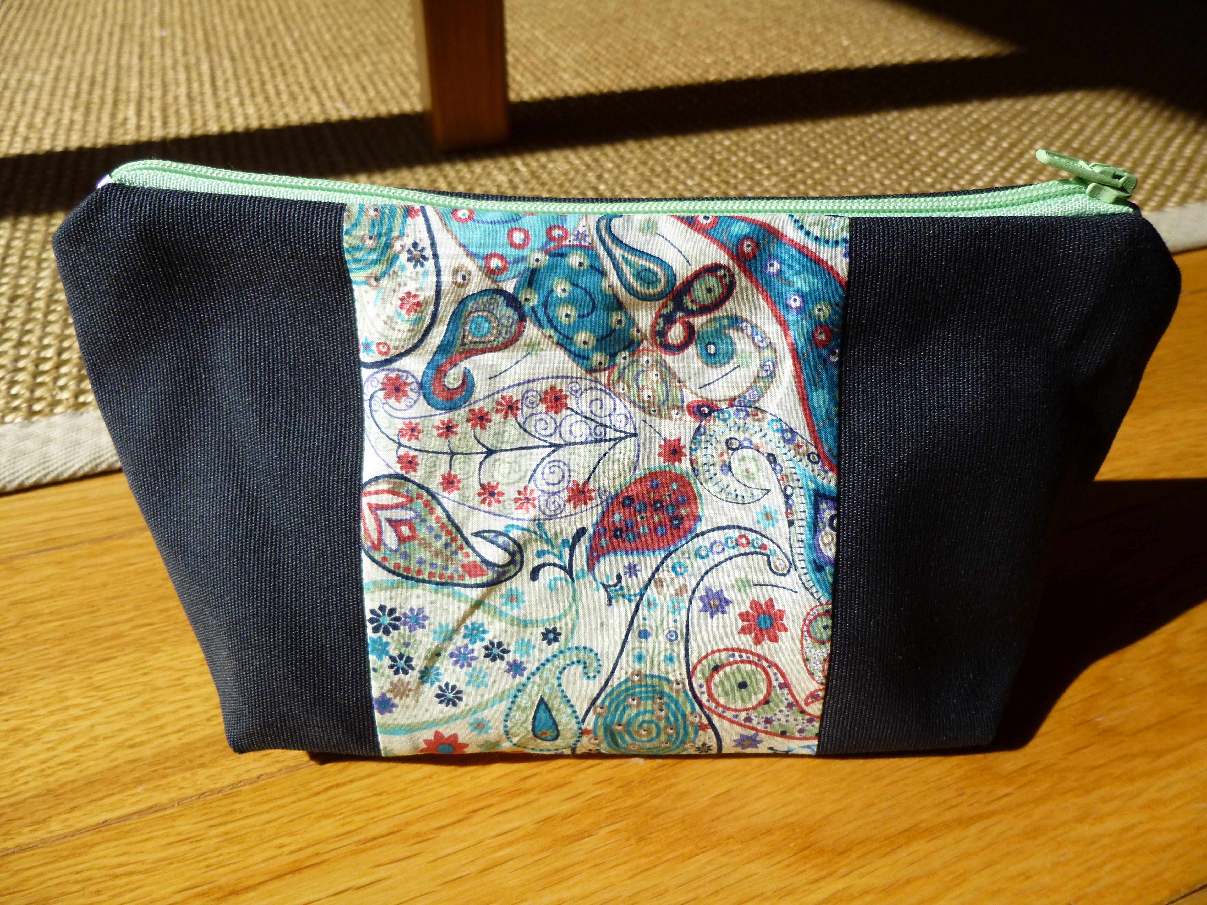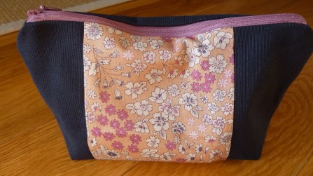 Cette petite trousse rose est vraiment ma préférée !! Fermeture trouvée au hasard dans les caisses du marché et le tissu est un coupon que je ne retrouve plus dans les boutiques 😦
