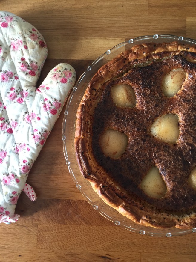 C’est donc un retour sucré puisque la semaine dernière j’ai ressorti une vielle recette que j’avais dans mon carnet. Je me demande même si je l’ai déjà faite. Elle fait partie des recettes que j’ai piqué à ma mère. Cette fois-ci c’est une recette de tarte poire chocolat.