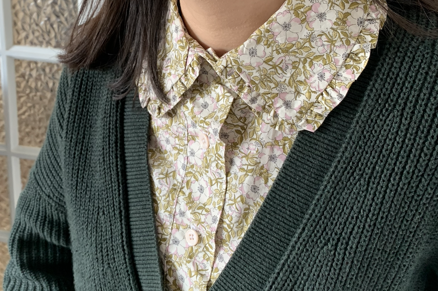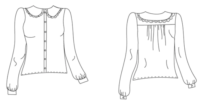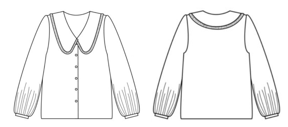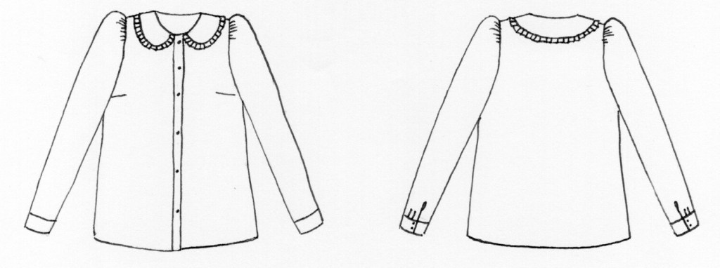 Aparté faite, je voue une véritable passion pour les cols. Col officier, col lavallière, col Victorien … et bien sûr les pieds de col avec fronces. En cherchant le patron qui me plaisait (je n’allais pas tous les acheter), j’ai trouvé de nombreux modèles: