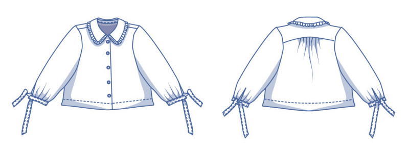 Ah ah ah, je crois que si j’avais vu ce patron avant de me lancer, j’aurai probablement choisi ce chemisier. Taille normale, froncé dans le dos, manches longues avec ou sans fronces.